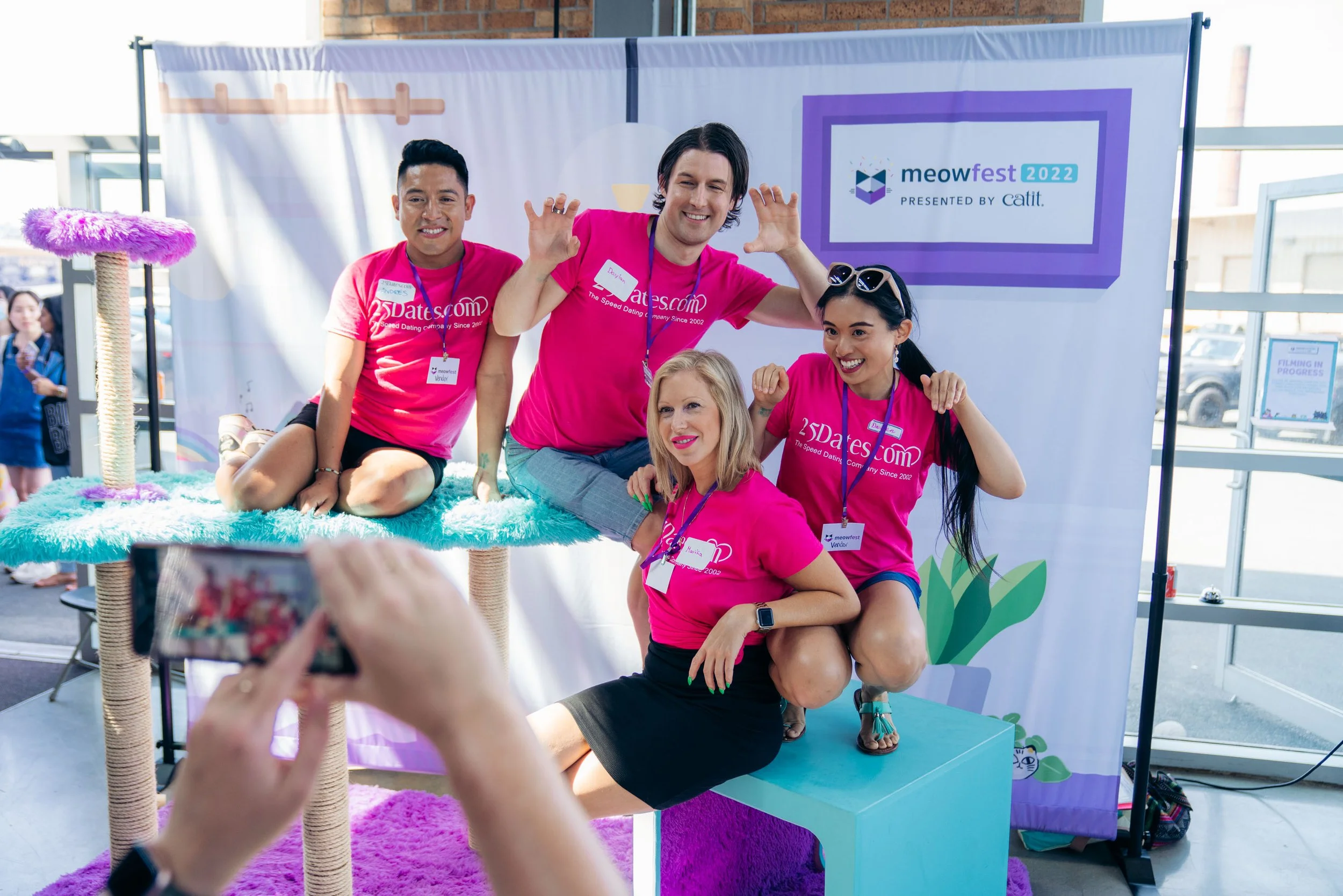 Photo ops included a human-sized cat tree, cartoon cat cut-outs illustrated by artist @aliasxahna, and a giant version of Junior, an adoptable kitty at Catfé.
