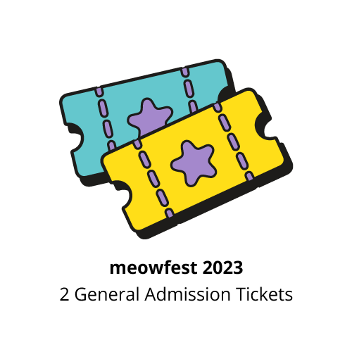 🎟️ 2 VIP tickets Canada’s largest cat festival, meowfest Vancouver (includes 9:30 am VIP-only entrance, access to VIP time slots for adoptable kitten area, one adult beverage drink ticket, reserved front-row seats to all stage presentations, one swag bag each filled with exclusive cat goodies, and more)